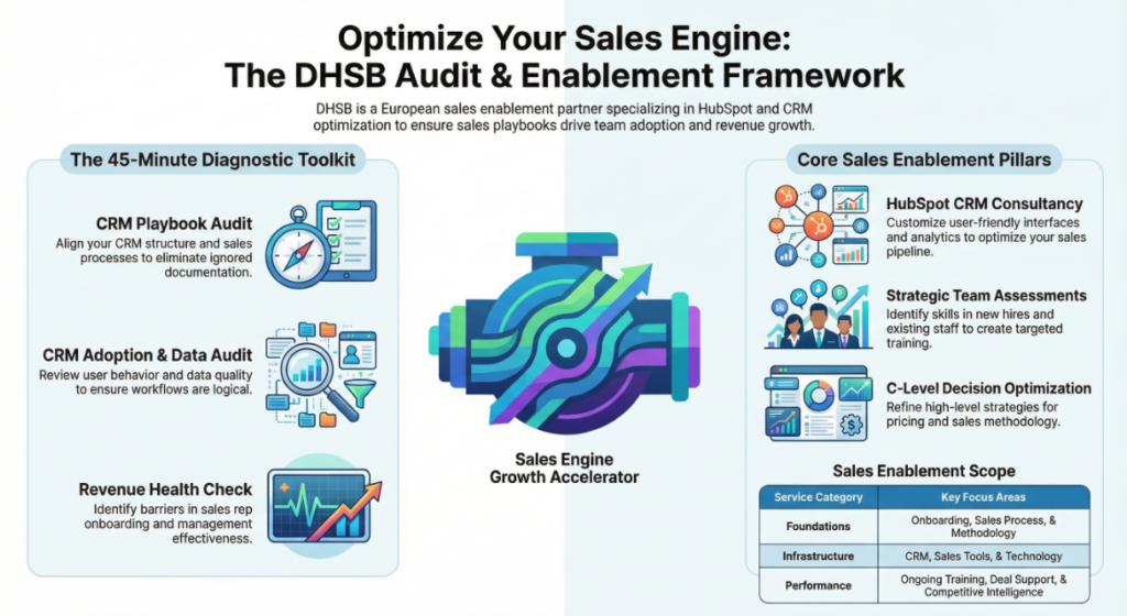 45 minutes intake about a deep dive into your sales process. Identify playbook gaps, CRM integration issues, and quick wins for higher conversion.”